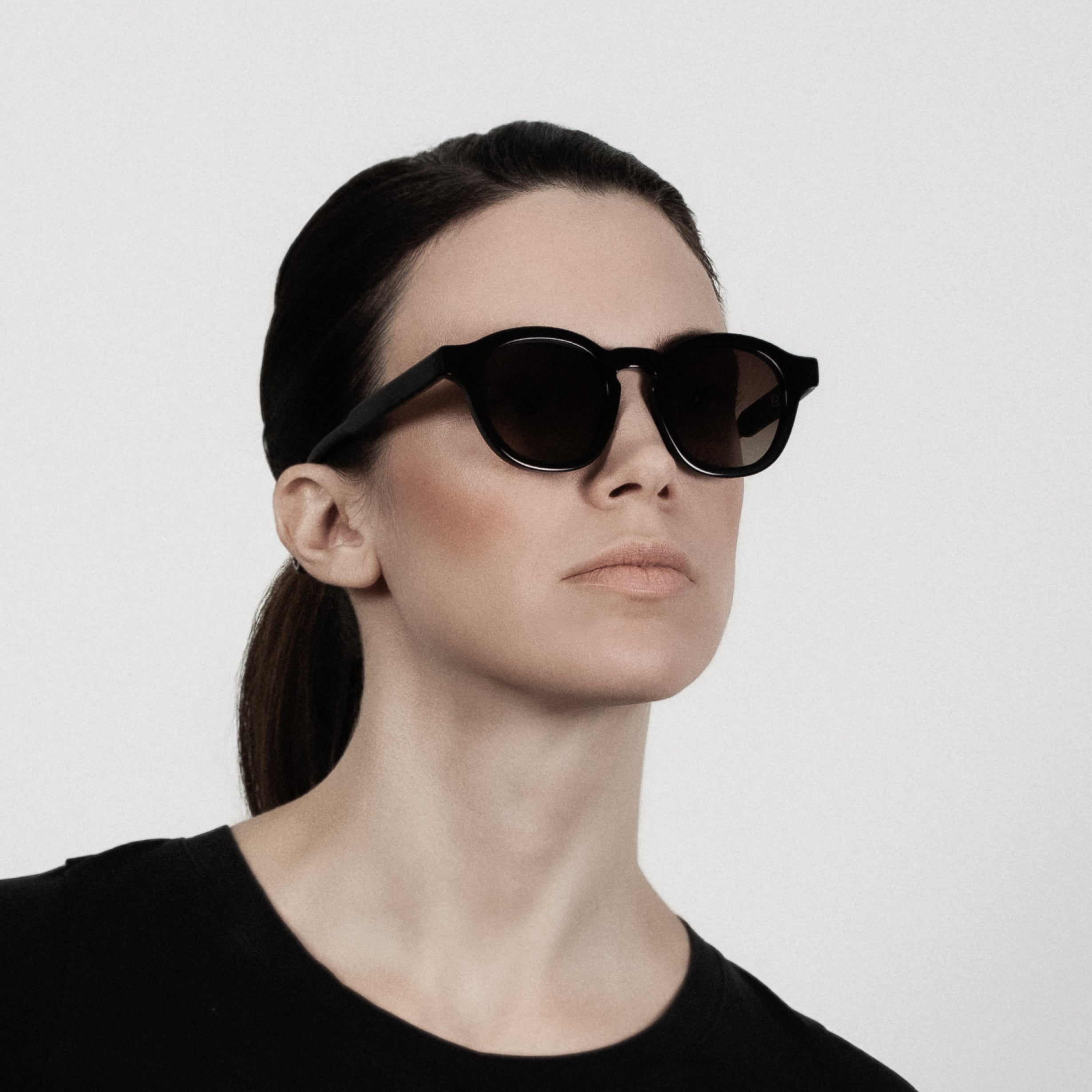 Sharp edges, flat front profile. Our monogram and model details are elegantly engraved into the sides of lenses and on top of the temples. Understated, yet distinctly Shoom.